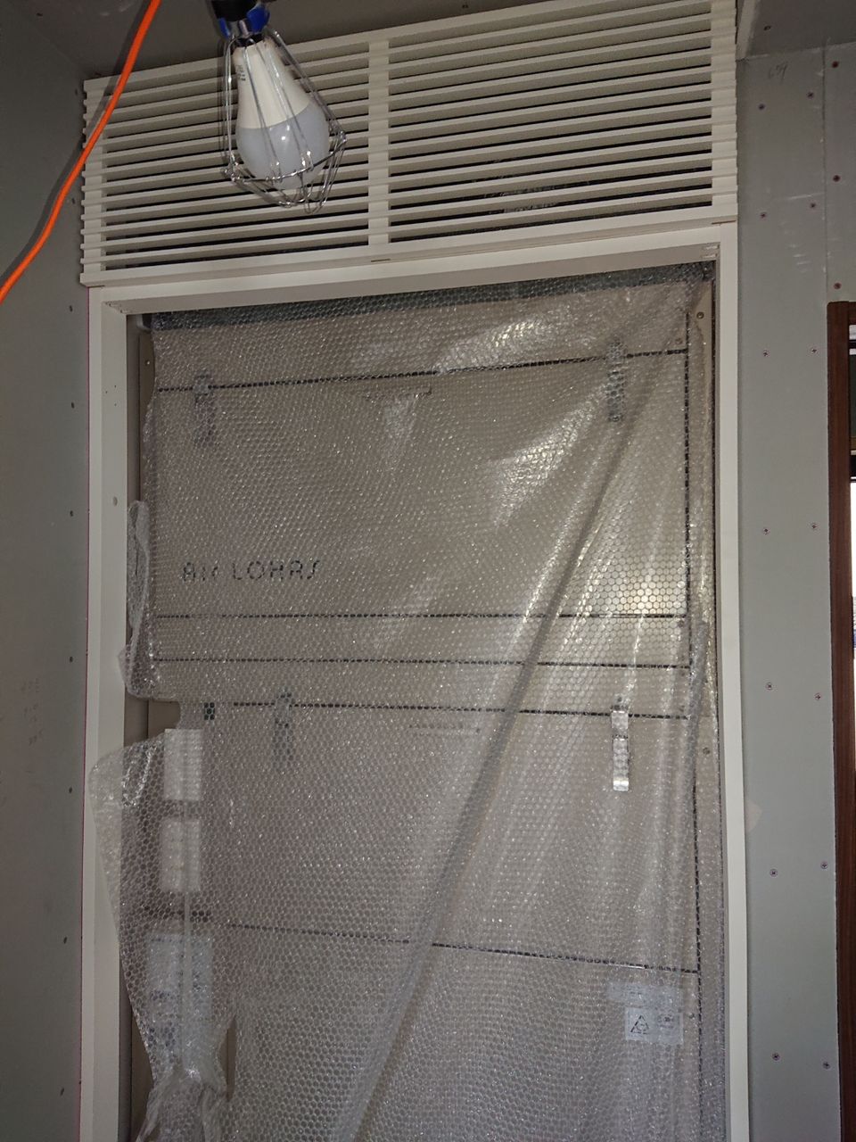 ご本尊です。ご本尊を祭っている建具が白のまま取り付けられているため、念のため現場監督A氏にはベリティス柄のシートを見積りに入れているので白のままにしないよう確認しました。「確認します。」との回答。