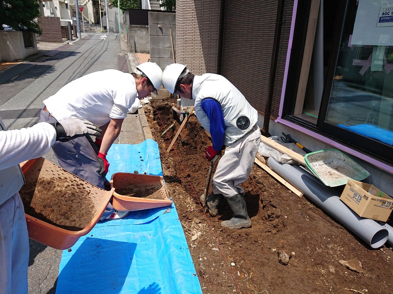 足場が外され、敷地を囲っていたフェンスもなくなりましたので外構工事が始められるようになりました。